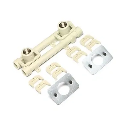Komplet zabezpečuje stabilnú inštaláciu, eliminuje pohyb potrubia a zjednodušuje montáž batérie. Je vyrobený z kvalitného PPR materiálu s vysokou odolnosťou voči tlaku, teplote a korózii, čo zaručuje dlhú životnosť a spoľahlivosť systému.